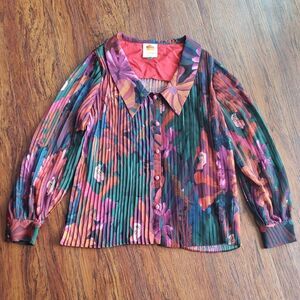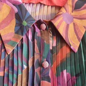Farm Rio Womens Toucan Tropical Chic Feminine Retro Bohemian Pleated Blouse Size Small