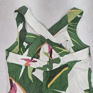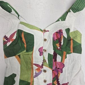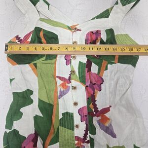 Farm Rio Womens White Tropicalistic Linen Button Mini Dress Medium Floral Beachy