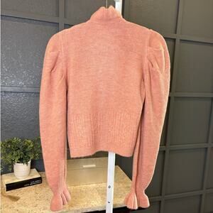 Farm Rio Women's XS Ruffle Knit Button Up Cardigan Sweater Pink Long Sleeve