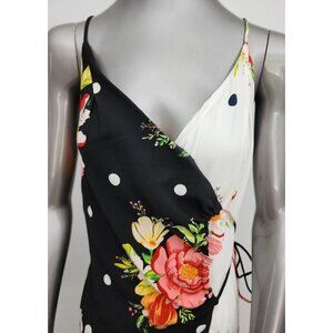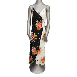 Farm Rio Wrap Maxi Dress Nanaju Floral Polka Dot Black White Small