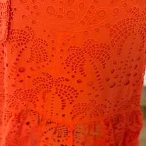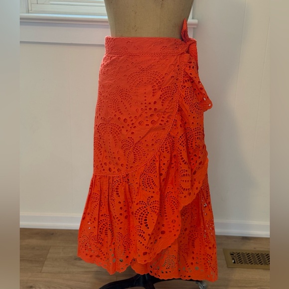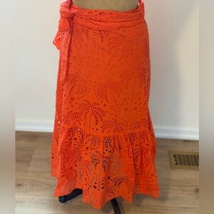 NWOT condition 100% cotton. Bright orange eyelet skirt with ruffle details. Wrap around.