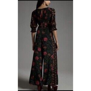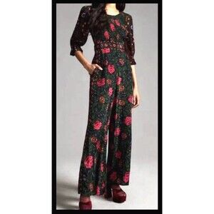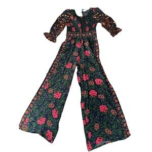 Farm Rio X Anthro Wide Leg Jumpsuit HotFloral Tropical Print Sz X Small