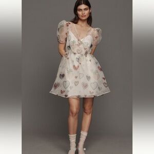Farm Rio X Anthropologie Semi-Sheer Puff-Sleeve Dress