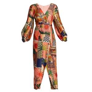Farm Rio XS Mystic Jungle Wrap bodice split leg bohemian patchwork Jumpsuit $245
