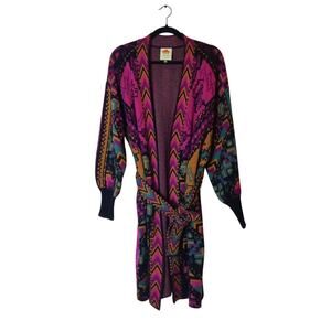 Farm Rio Yawanawa colorful geometric striped Aztec duster sweater, women's size XS - fits oversized.