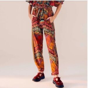 Farm Rio Yawanawa Stripes Paperbag High Waist Pants Size Medium