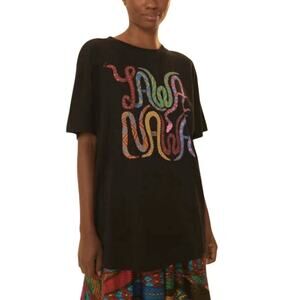 Farm Rio Yawanawa T Shirt Womens Size L Black Short Sleeve Relaxed Fit. This top is new without tags.
