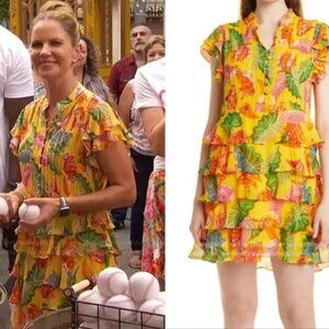 Farm Rio Yellow Beaks and Banana Tiered Ruffle Dress