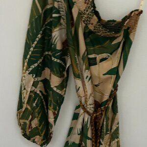 Farm Rio beige tropical isla one-shoulder jumpsuit Size M