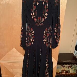 Elegant black dress with intricate floral embroidery. Perfect for any occasion.