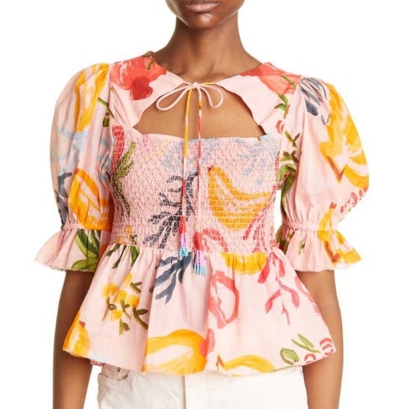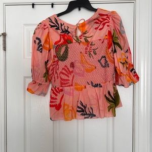 XL - Farm Rio mixed fruit smocked top - such a cute neckline. NWOT. Very flattering Retails $178