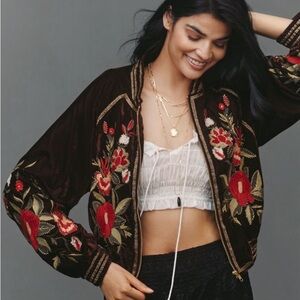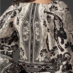 Farm Rio blouse with billowy sleeves, zipper in back, gently used, worn once, purchased at Anthropologie.