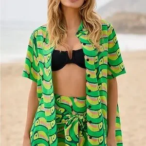 Brighten up your beach day with this vibrant green farm Rio button up ! Beautiful colors!! Sizes available M-L !