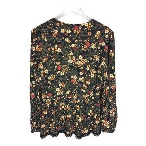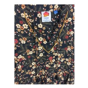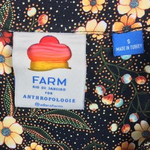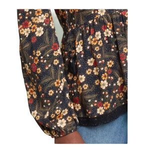 Exclusive Anthropologie Farm Rio Sayen boho peasant top. Gorgeous floral print in rich sunset oranges and reds along with white, cream and light blue on a navy base. Loose fitting, so it runs big and will fit larger sizes. 100% viscose. Excellent condition, like new no visible flaws. V neck, long sleeve, tassel ties and side zip. 25” length 17” flat across chest. Non smoking/pet friendly home. Crossposted.
