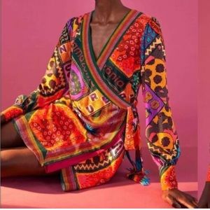 Farm Rio dotted patch scarf wrap mini dress or tunic multicolor size S NWT