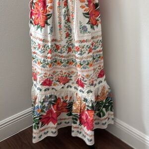 Beautiful Farm Rio dress with cut outs. MIDI length. Has pockets. Lined. Additional buttons still in tact. Worn once.