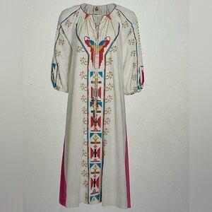 Vibrant, intricate embroidery and beading lend dimension to Farm Rio’s Macaw midi dress, cut with a relaxed caftan-style shape.