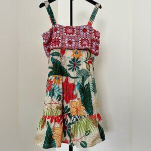 Farm Rio for Anthropologie Dress with Crochet Overlay and Floral Print (M)