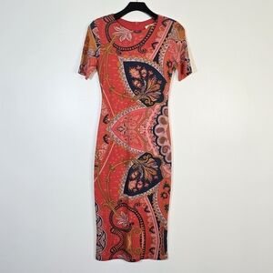Farm Rio for Anthropologie Giannina Knit Midi Shift Dress XS Petite