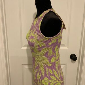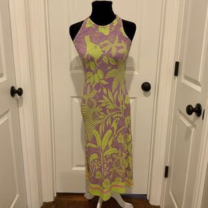 Farm Rio for Anthropologie Green Purple Tropical Print Smocked Tank Dress Small