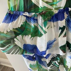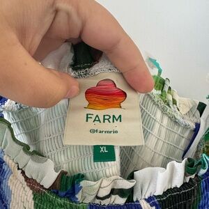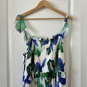 Stunning gently worn Farm Rio maxi dress! With flutter straps and a ruched top, plus a tier bottom skirt.