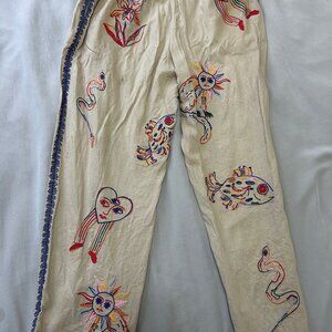 Farm Rio pants. Embroided designs, so cute. Worn twice, size XS but run bigger