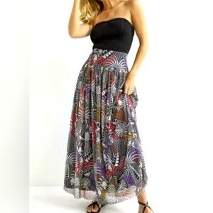 Farm Rio pineapple butterfly Floral Patterned Maxi Skirt side zipper flowy style