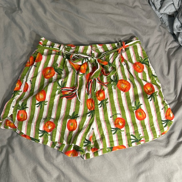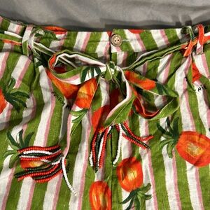 Brand new in great condition. Farm rio shorts with orange color pineapples. Cute beaded belt to match. High waits. The waistband is 14” a cross or 28” around. Has nice big pockets. Make me an offer!