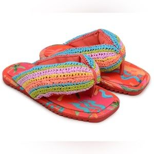 Farm Rio raffia flip flops 🦜