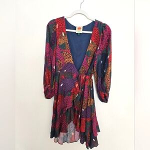 Farm Rio ruffled cheeta print wrap dress long sleeve | size Small