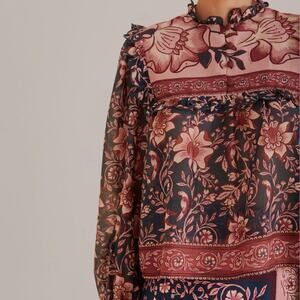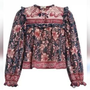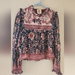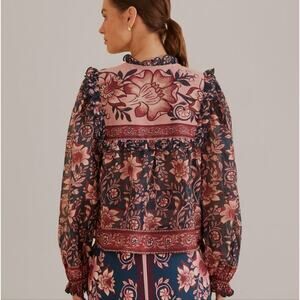 Farm Rio teal ainika charm long sleeve blouse sz small nwts