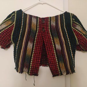 Bought it some time ago but never used. It is a short rustic top, with an opening on the back.