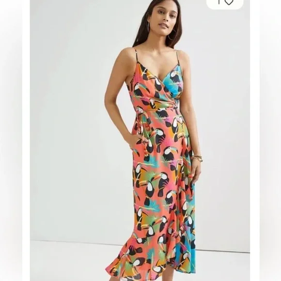 Farm Rio for Anthropologie Toucan wrap midi dress, size Medium.