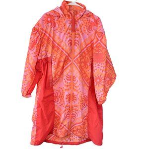 Farm Rio x Adidas Colorful Hooded Jacket Women Small Windbreaker Orange Coral Ne