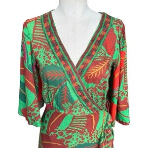 Farm Rio x Anthropologie Flutter-Sleeve Wrap Maxi Dress in Green XS
