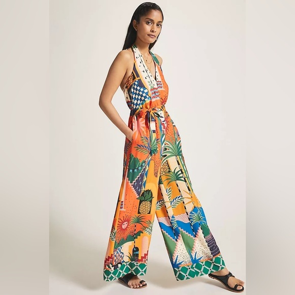 Farm Rio x Anthropologie Halter Jumpsuit, Size Large