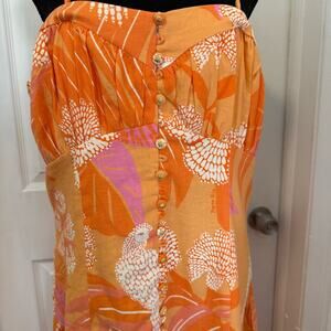 Farm Rio x Anthropologie Linen Blend Strapless Drop-Waist Maxi Dress