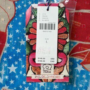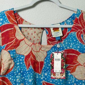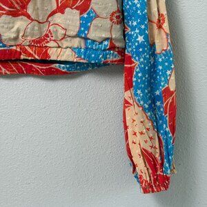 Farm Rio x Anthropologie Puff-Sleeve Bubble Blouse Size L Orange Blue Floral NWT