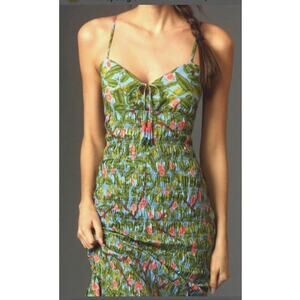 Farm Rio x Anthropologie Ruched Tie-Front Midi Dress Medium