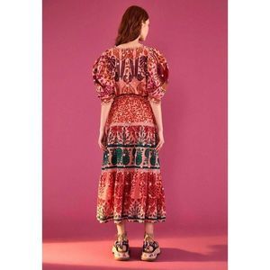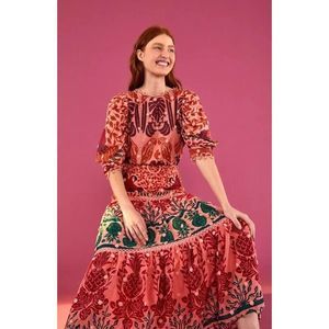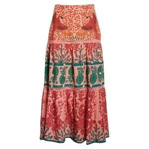 Farm Rio Ainika Print Macaws 3D Flower Applique Maxi Skirt S Small NWT