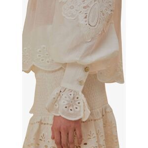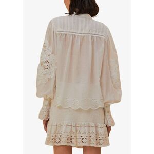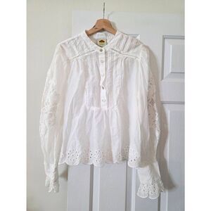 Farm Rio Cotton Peasant Blouse In Off White Size L