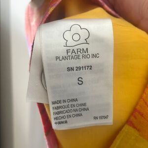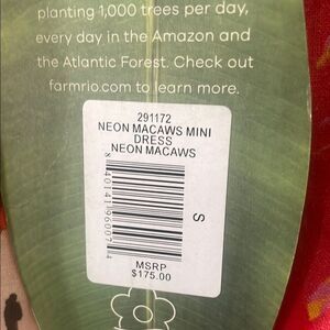 Colorful on or off-shoulder dress featuring a vibrant macaw print. Button-down front adds a stylish touch. It is fully lined and does not have pockets. It runs small, see approximate measurements below.