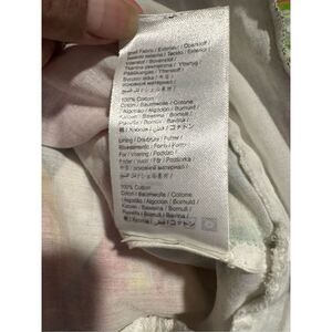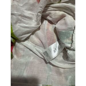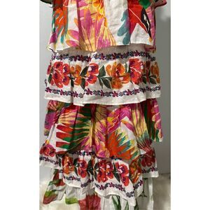 Farm Rio Tropical print tiered Ruched tie shoulder smocked top XS tag was cut out but fabric tag still there very cute dress has a pull shown in picture but doesn’t affect wear no stains