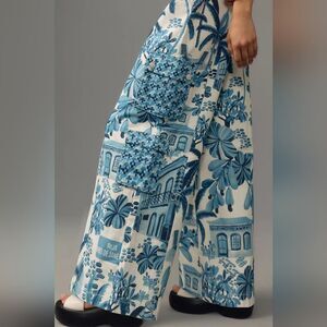 New with tags Farm Rio x Anthropologie Printed Overalls In Blue Motif Size Extra Large
