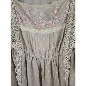 Farm Sz P Peasant Embroidered Tan Dress Semi sheer