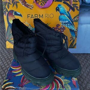 BRAND NEW FARM RIO BOOTS!!!! Bright and colorful box, shopping tote and dust cover included. Features tropical designs with birds and foliage. Perfect for gifting or personal use. Women’s size 7.