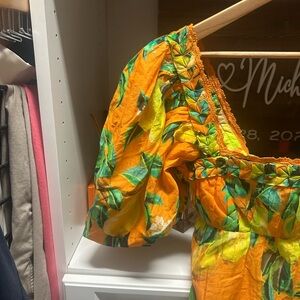 FarmRio Orange Pear Print Puff Sleeve Top NWOT
