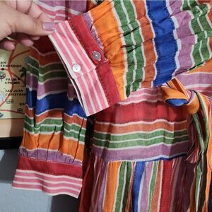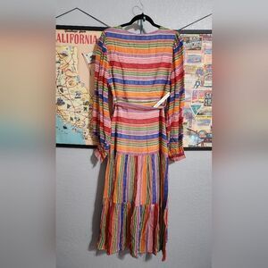 Farm Rio for Anthropologie Multi Color Striped Belted Dress