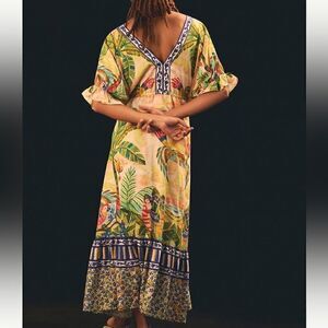 Farm Rio macaw 🦜 paradise puff sleeve maxi dress NWT