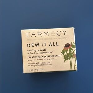 Experience the rejuvenating power of Farmacy's eye cream, crafted to nourish and hydrate the delicate skin around your eyes. Encased in a sleek white jar with a stylish brown lid, this product embodies the brand's commitment to clean and effective skincare. Enjoy a refreshed and revitalized look with every application.